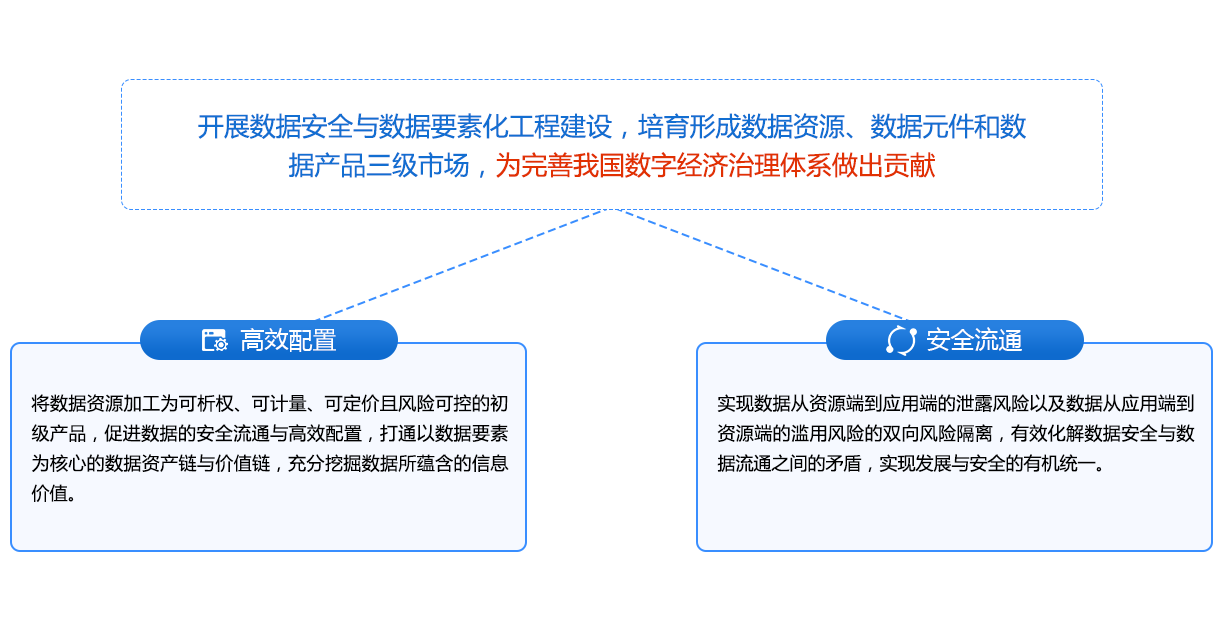 以全自主、高安全的数据金库作为底层运行支撑,通过数据资源两次赋能,打通数据资产链和数据价值链的“双链融合。