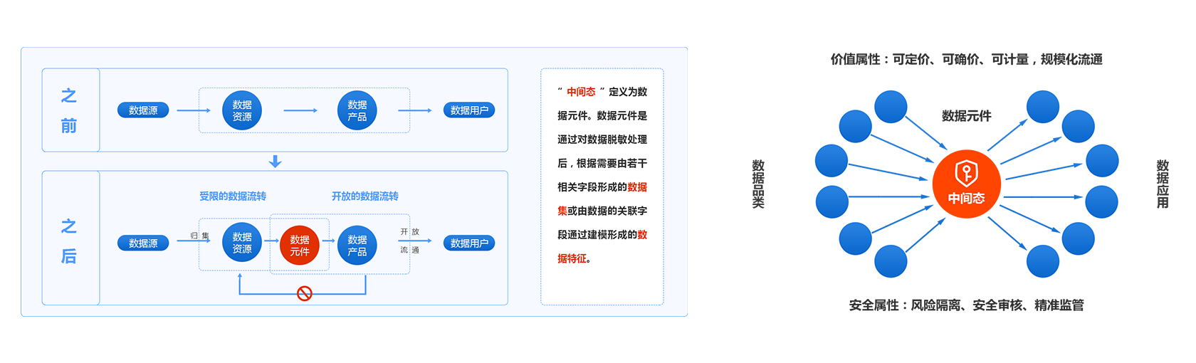 “中间态(数据元件)”是破解数据要素市场化痛点的金钥匙,具有安全属性和价值属性