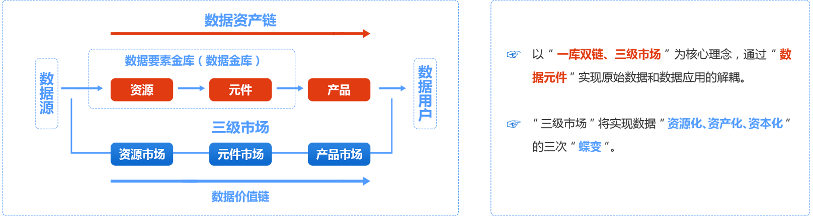 通过建立资源市场、元件市场、产品市场,实现数据“资源化、资产化、资本化”的三次“蝶变”,构建了以政策法规为依归、技术创新为特征、安全可信为基础的数据要素市场化配置新体系。