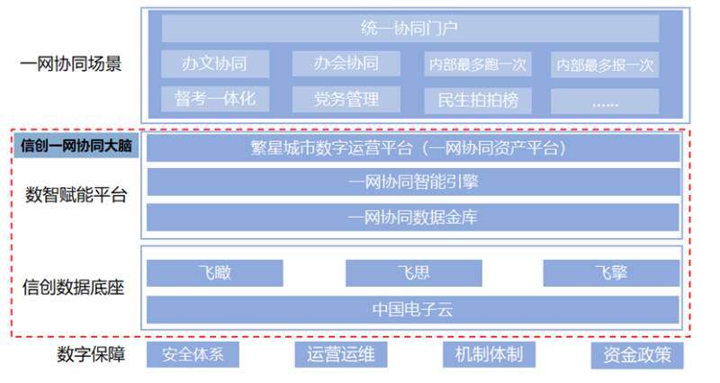 中国电子云的“一网协同”方案,以ky开元电子PKS可信体系为基础,以中电蓝信移动平台为安全底座,通过统分结合的建设模式不断繁衍和定制化业务应用,将政务应用逐渐转移到“指尖”,同时结合数广模式进行平台能力开放、生态接入和持续运营,通过赋能、共建和贴身服务的方式构建不断生长、逐步进化的协同办公平台。