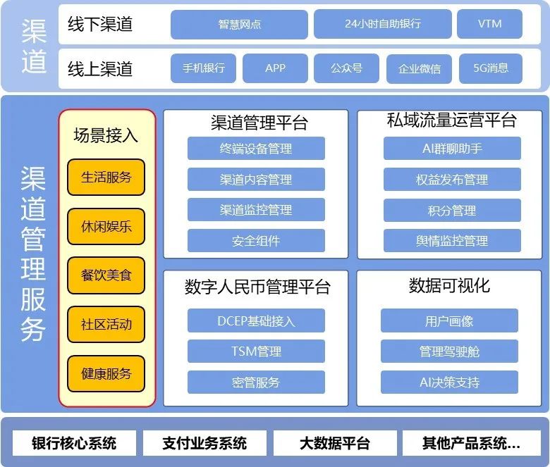 支持通过城银清/农信银等机构,和数字人民币的运营机构进行业务往来,以此获得个人钱包兑换,对公钱包管理和收单支付等多方面能力,以帮助银行以及其客户更便捷的融入数字人民币生态系统。