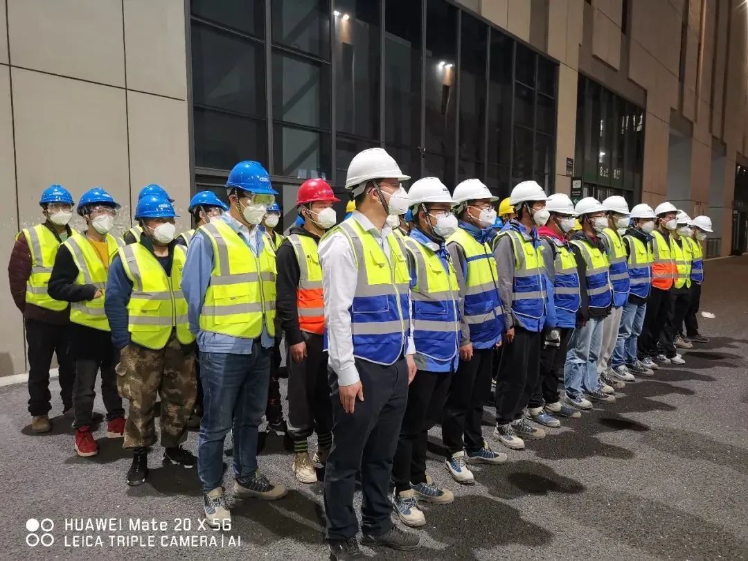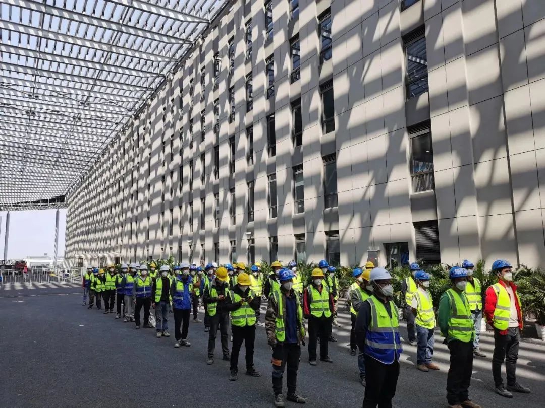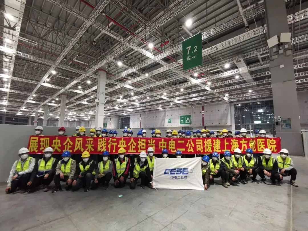 5日下午,各项目举行了简单而庄严的出征誓师仪式, 随后,党员抗疫突击队带着必胜的信念奔赴方舱医院援建一线,至5日晚9时,公司援建人员全部到位,与数千建设者一起,共同为上海市国展中心方舱医院建设贡献“中电二力量”,巩固疫区“生命防线” 。