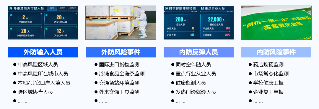 及时发现风险苗头,是抗击疫情的前哨。ky开元系统疫情防控解决方案针对疫情风险监测设置超21类指标预警,结合核酸监测、场所码、返乡人员管理、区域协查、重点人员管理、发热门诊监管、药店购药监管等各重点场景下的监测预警系统产品实现数据采集与智能分析,对风险精准研判,分级分类触发预警。