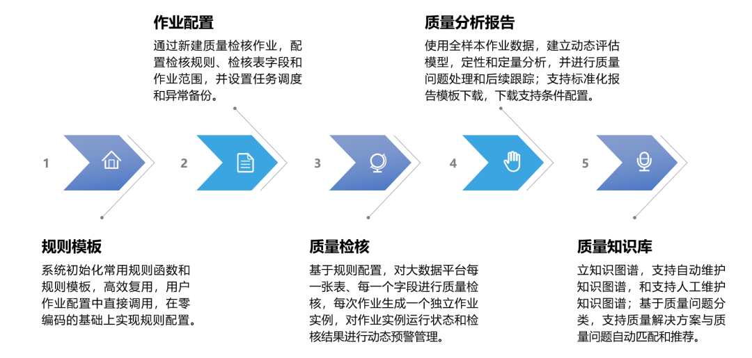 通过可视化界面零编码方式完成数据质量规则配置,降低操作难度和准入门槛。