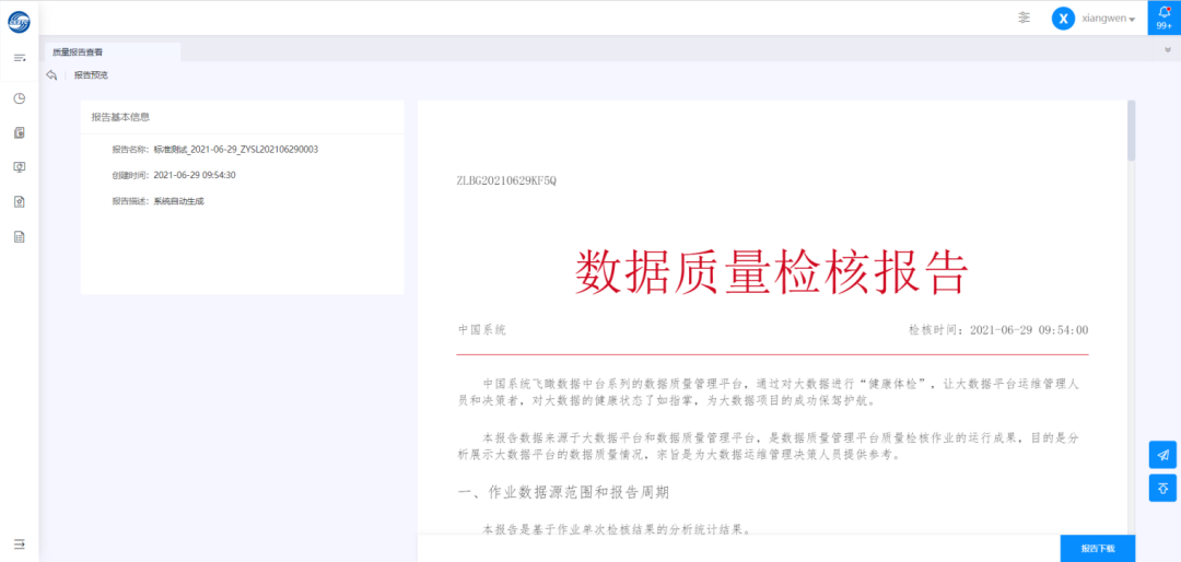 数据质量报告是数据质量管理平台的产物,本质是一个BI应用产品,基于大数据质量分析的业务场景,实现闭环的数据分析应用,为大数据发展和数据治理提供重要依据。