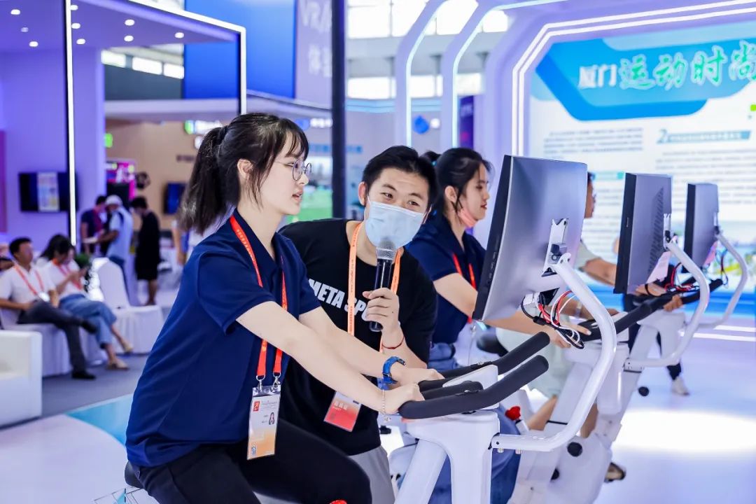 ky开元系统本次展示了自主研发的云动智能单车等产品,还在现场举行了多人骑行竞速赛的活动。数字孪生技术打造的场景和赛道,加上元宇宙的沉浸式运动体验,吸引了众多观众参与。