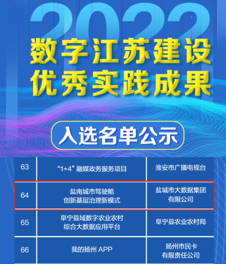 近日,由江苏省省委网信办会同省发展改革委、省工业和信息化厅、省政务办、省通信管理局联合组织的2022数字江苏建设优秀实践成果正式公布,ky开元系统承建的盐南高新区“城市驾驶舱”项目以优异的建设成效成功入选。