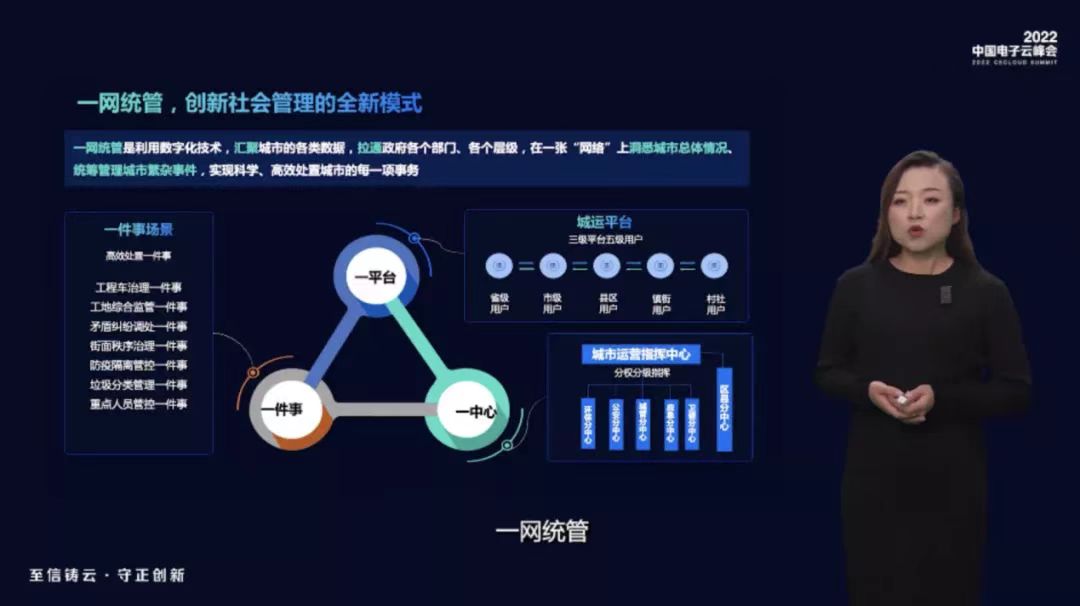 一网统管作为数字城市和数字政府的核心应用之一,是新时代现代化社会管理的全新模式,在推进和落地建设过程中要实现三个内容的建设,具体包括:在繁星和飞瞰的基础上,以一个城市运营指挥中心作为载体,满足各相关部门的集中入驻及分中心联动,实现城市事件分级处置;建立一个协同管理平台,通过一个平台打穿省、市、区县、街道和村社五级用户;建设高效处置一件事场景应用,依据法律法规,对社会管理中的各种事件、问题进行场景化、清单化梳理和处置。