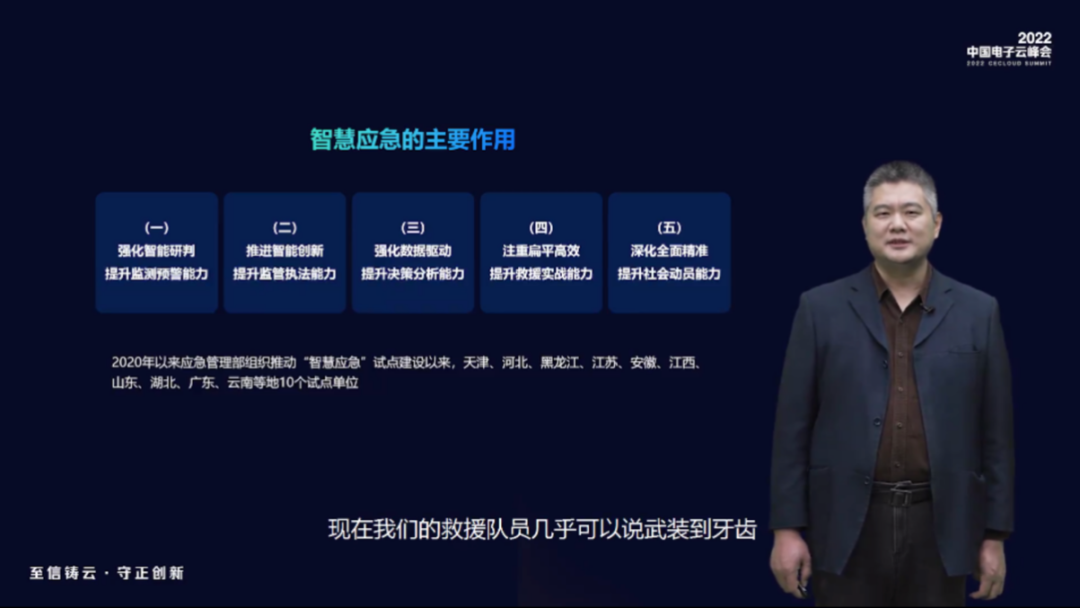 中国灾害防御协会应急救援专业委员会秘书长杨艳武在讲解智慧应急行业发展时介绍道,在2020年,应急部已经在天津、河北、山东、湖北、广东、云南等大概10个省市组织了智慧应急的试点工作,并在五个方向取得了亮眼成就,具体包括:强化智能研判,提升监测预警能力;推进智能创新,提升监管执法能力;强化数据驱动,提升决策分析能力;注重扁平高效,提升救援实战能力;深化全面精准,提升社会动员能力。