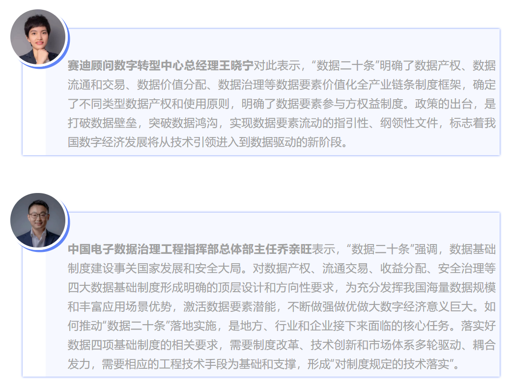 “数据二十条”积极鼓励试验探索,支持有条件的地方和行业先行先试,推动公共数据、企业数据、个人数据合规高效流通使用,赋能实体经济发展。